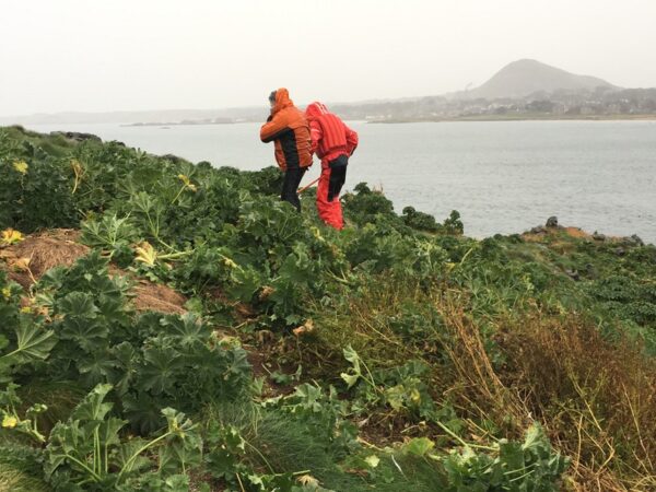 We help local organisations, specifically for the past few years we have been trying to reduce the impact of invasive Tree Mallow on Lamb Island at North Berwick. Tree Mallow is taking over the island, its roots choke Puffin burrows, preventing them from nesting. Landing is very difficult and SOS Puffin cannot land on the island and remove it. With some care, sea kayaks can land in calm conditions, and so over the winter, outside the nesting season LSKC has been making visits to remove the invasive Tree Mallow.